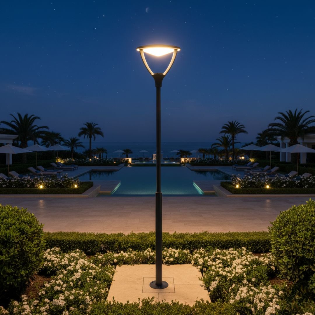 The Nocturne 203 Pole Light combines precision-engineered aluminium die-cast housing and a high-clarity PC diffuser, all mounted on a robust mild steel pole. Powered by a 36W Edison LED module with a premium Philips driver, it delivers consistent, warm-white illumination while consuming minimal energy. Finished in sophisticated graphite grey, and measuring 500 × 500 × 2580 mm (H), this fixture resists corrosion and disperses heat efficiently for long-term performance. Ideal for residential gates, driveways, pathways or commercial entrances, the Nocturne 203 lends contemporary style and reliable light quality to any outdoor setting.