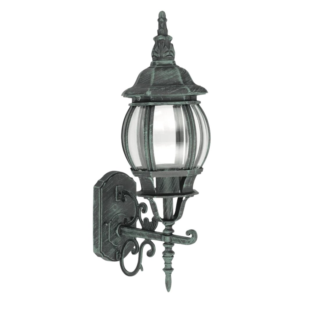 Victorian Antique Green Aluminum Outdoor Orb Wall Light Sconce Lamp