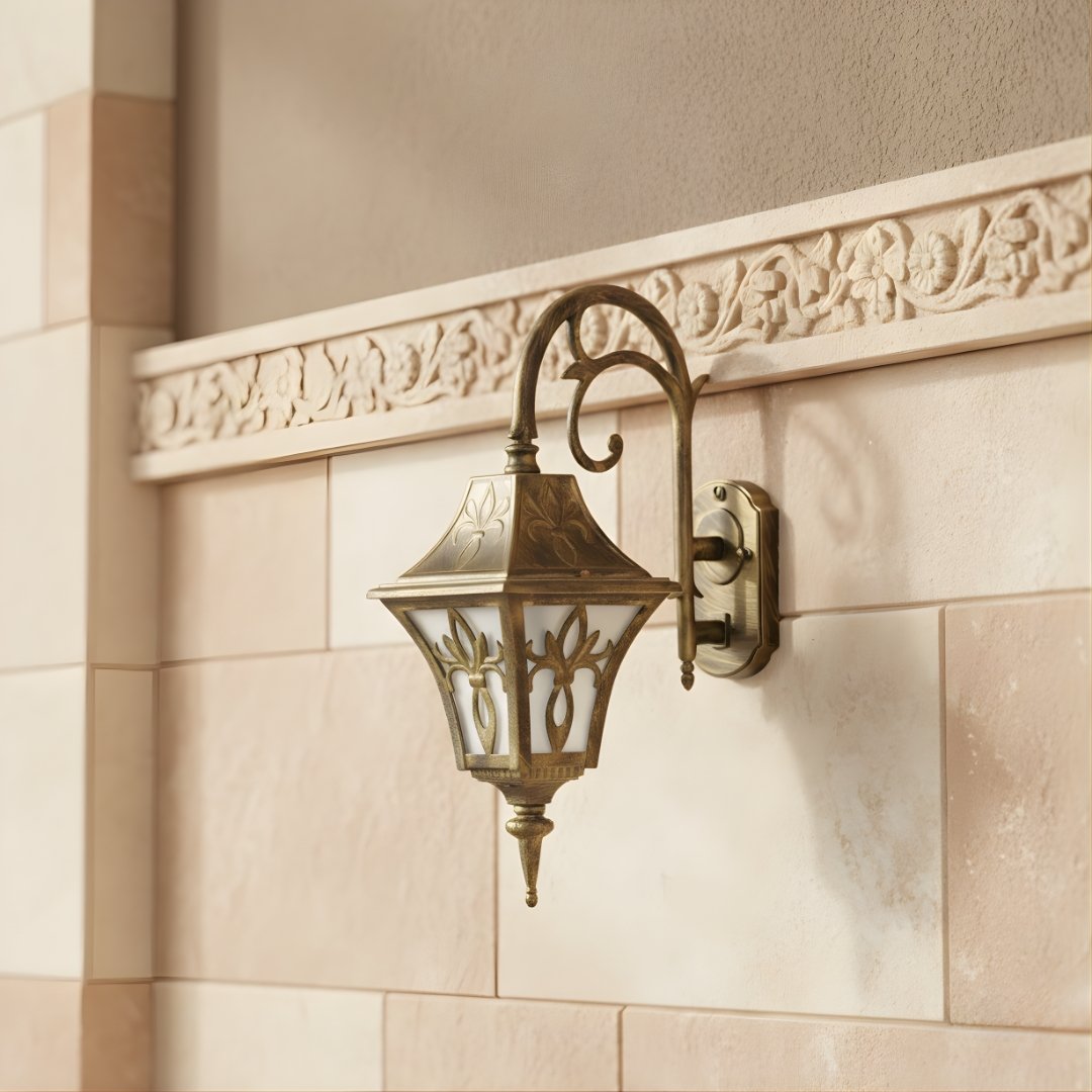 Victorian Antique Gold or Black Aluminum Outdoor Regal Arm Wall Light Lantern