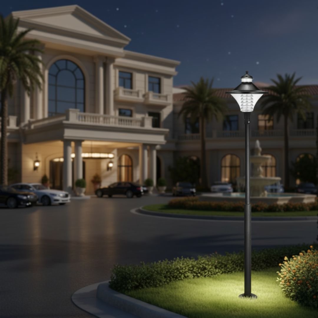 Venus 203 Pole Light (Big-On top), Outdoor Waterproof LED, Aluminium, Black